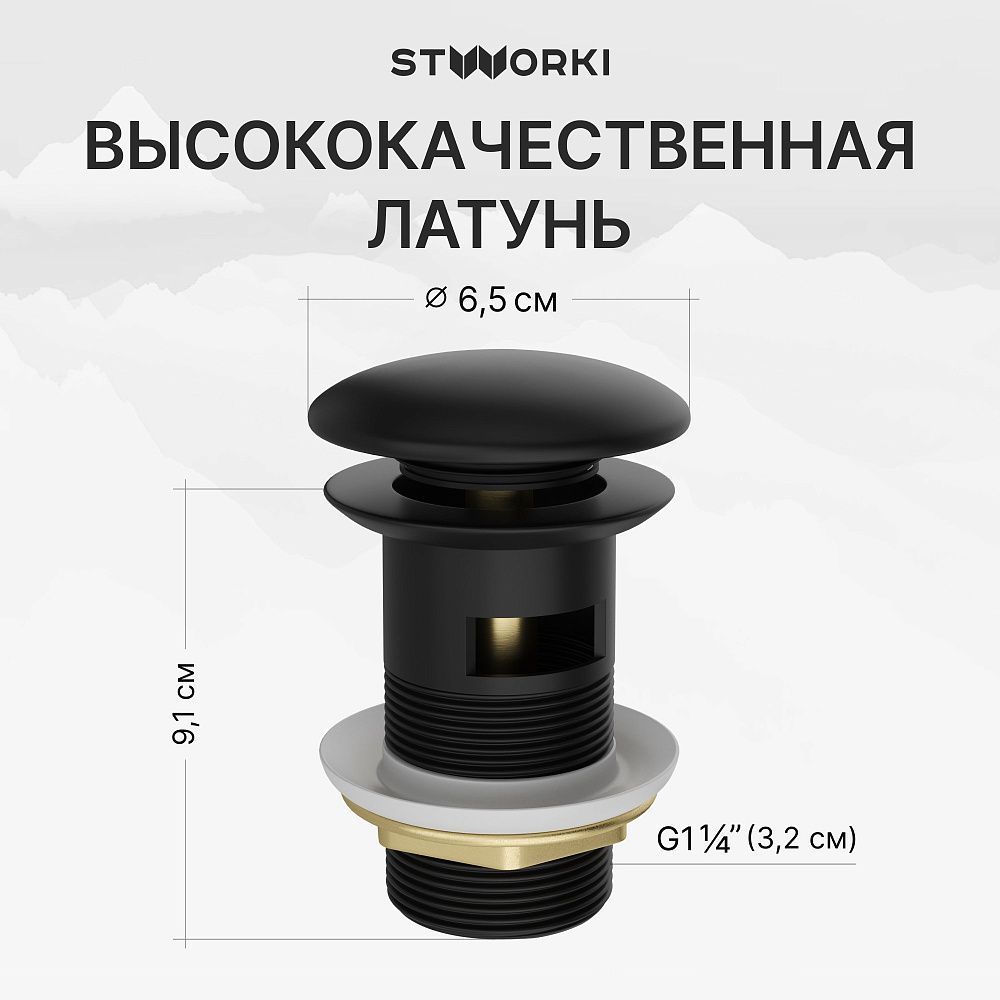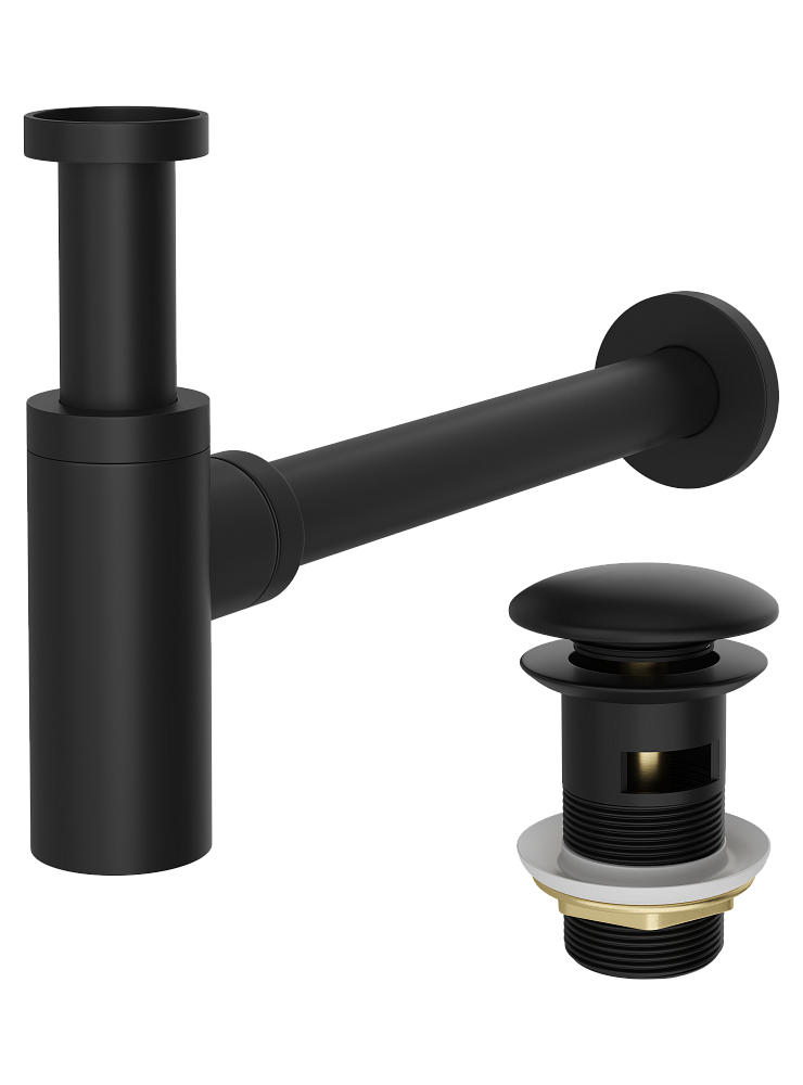 —Комплект: Донный клапан Stworki SW-001BK черный матовый + Сифон SD-001BK черный матовый (1034987)