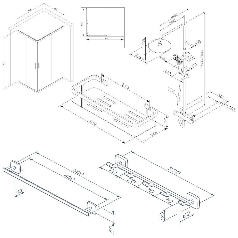 Комплект дополнен термостатической душевой системой с верхним душем и премиальным набором функций. А наличие в комплекте системы хранения облегчит подбор необходимых аксессуаров. Эргономичная двухуровневая полочка вместит гели и шампуни  необходимые для принятия душа. Расположите крючок и вешалку рядом с душевым уголком и ваш любимый халат и полотенца всегда будут в быстром доступе.