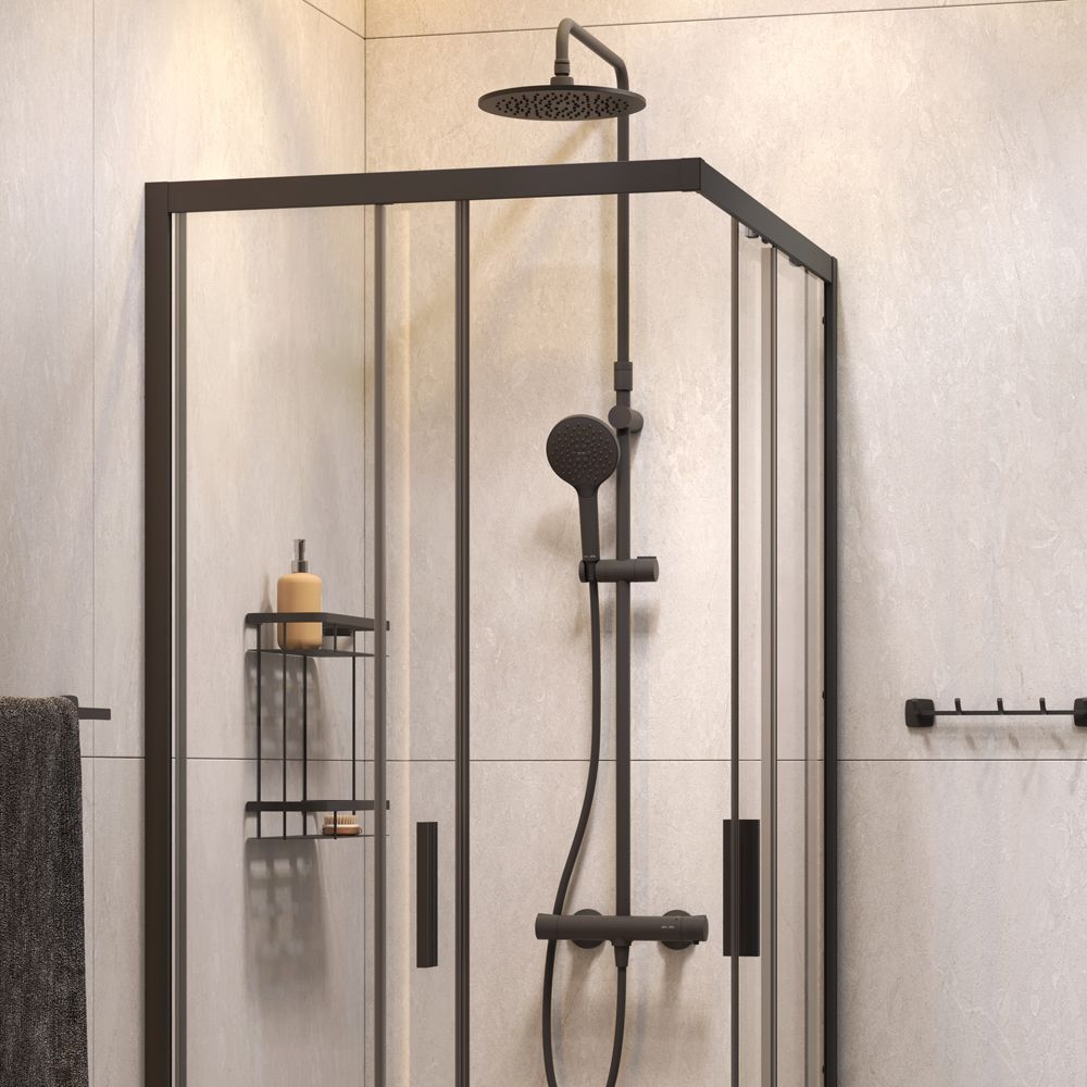 —Комплект душевого уголка с душевой системой и аксессуарами Am.Pm Gem S WK93EQ стекло прозрачное профиль черный без поддона