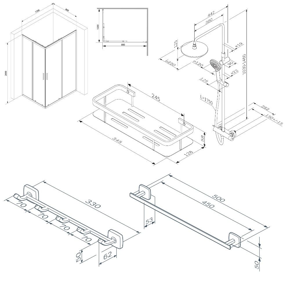 Комплект дополнен термостатической душевой системой с верхним душем и премиальным набором функций. А наличие в комплекте системы хранения облегчит подбор необходимых аксессуаров. Эргономичная двухуровневая полочка вместит гели и шампуни необходимые для принятия душа. Расположите крючок и вешалку рядом с душевым уголком и ваш любимый халат и полотенца всегда будут в быстром доступе.
