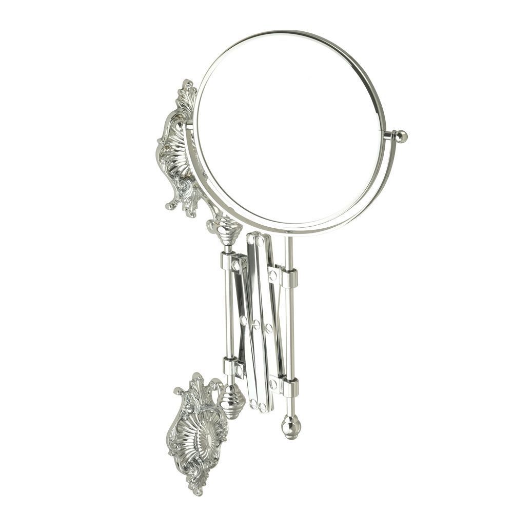 Настенное оптическое  зеркало-пантограф коллекции ELISABETTA бренда MIGLIORE с двумя зеркальными полотнами, одно из которых имеет трекратное увеличение для удобства нанесения макияжа или проведения уходовых процедур. Данное зеркало станет достойным украшением вашего интерьера. Розетка аксессуара имеет необычную форму, и удобный крепеж.