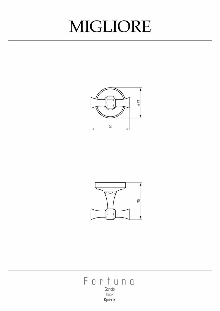 Крючок серии FORTUNA бренда MIGLIORE — один из самых необходимых предметов, который можно использовать как в ванной комнате, так и на кухне, в коридоре или кладовке. Трудно переоценить функциональность и универсальность данного предмета - можно повесить несколько крючков рядом или придумать иные дизайнерские решения. Изделие выполнено из латуни и имеет высококачественное хромо-никелиевое покрытие, которое при правильном уходе надолго сохранит  свой блеск. Рекомендуется использовать чистящее средство бренда MIGLIORE для смесителей и аксессуаров с хромированным покрытием.