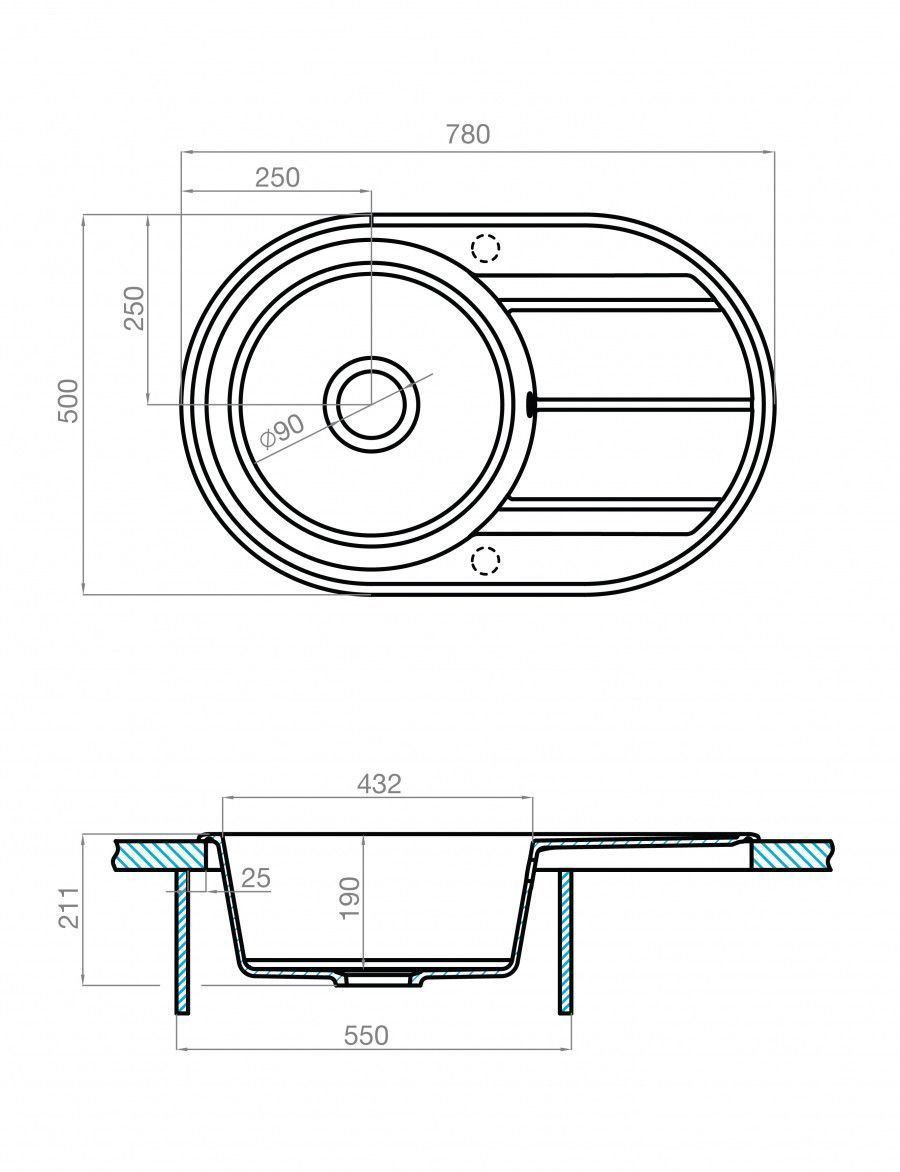 —Кухонная мойка Aquaton Амира 1A712932AI250 80х50 цвет серый поверхность матовая