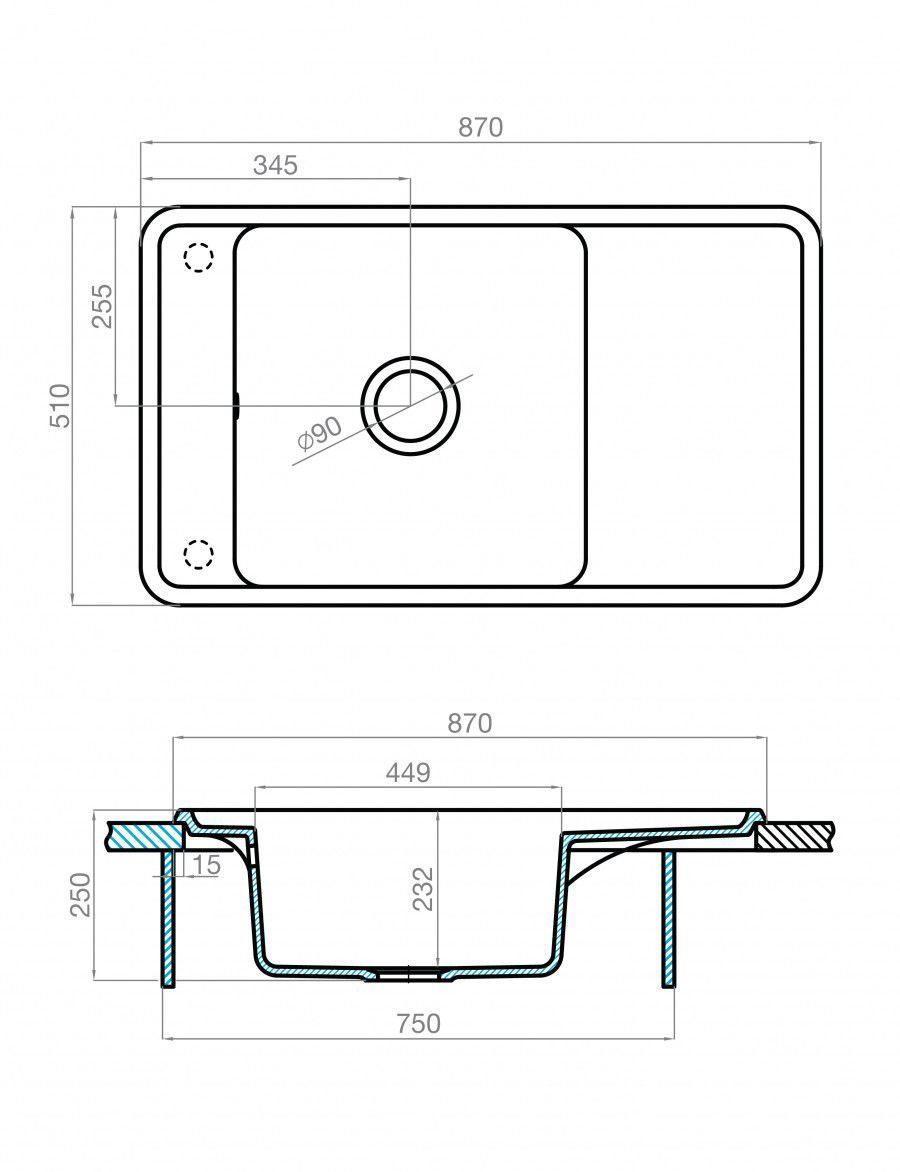 —Кухонная мойка Aquaton Беллис 1A724832BS250 85х50 цвет серый