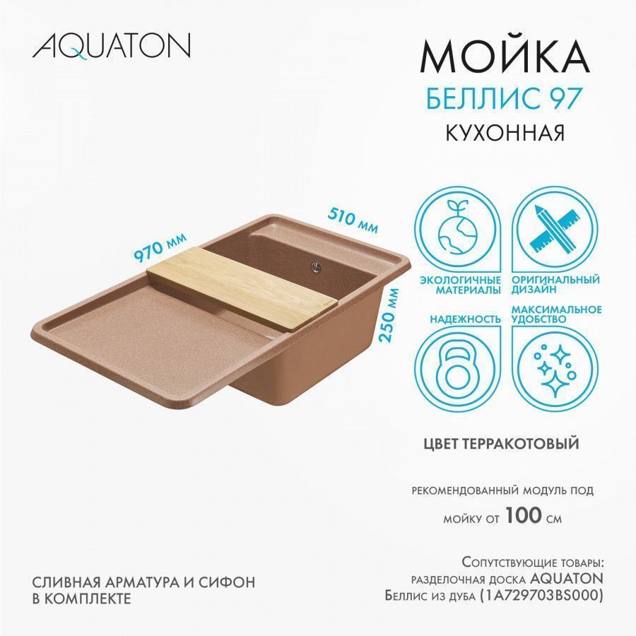—Кухонная мойка Aquaton Беллис 1A725132BS270 95х50 цвет коричневый
