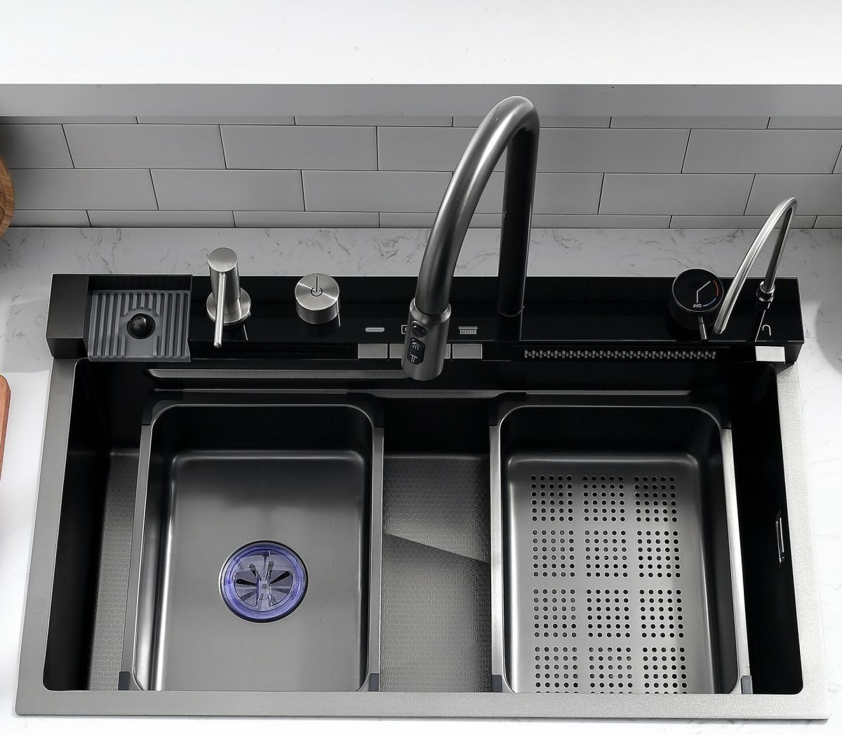 5. Поверхность мойки: PVD. Цвет: тёмная сталь («Nano-black»);