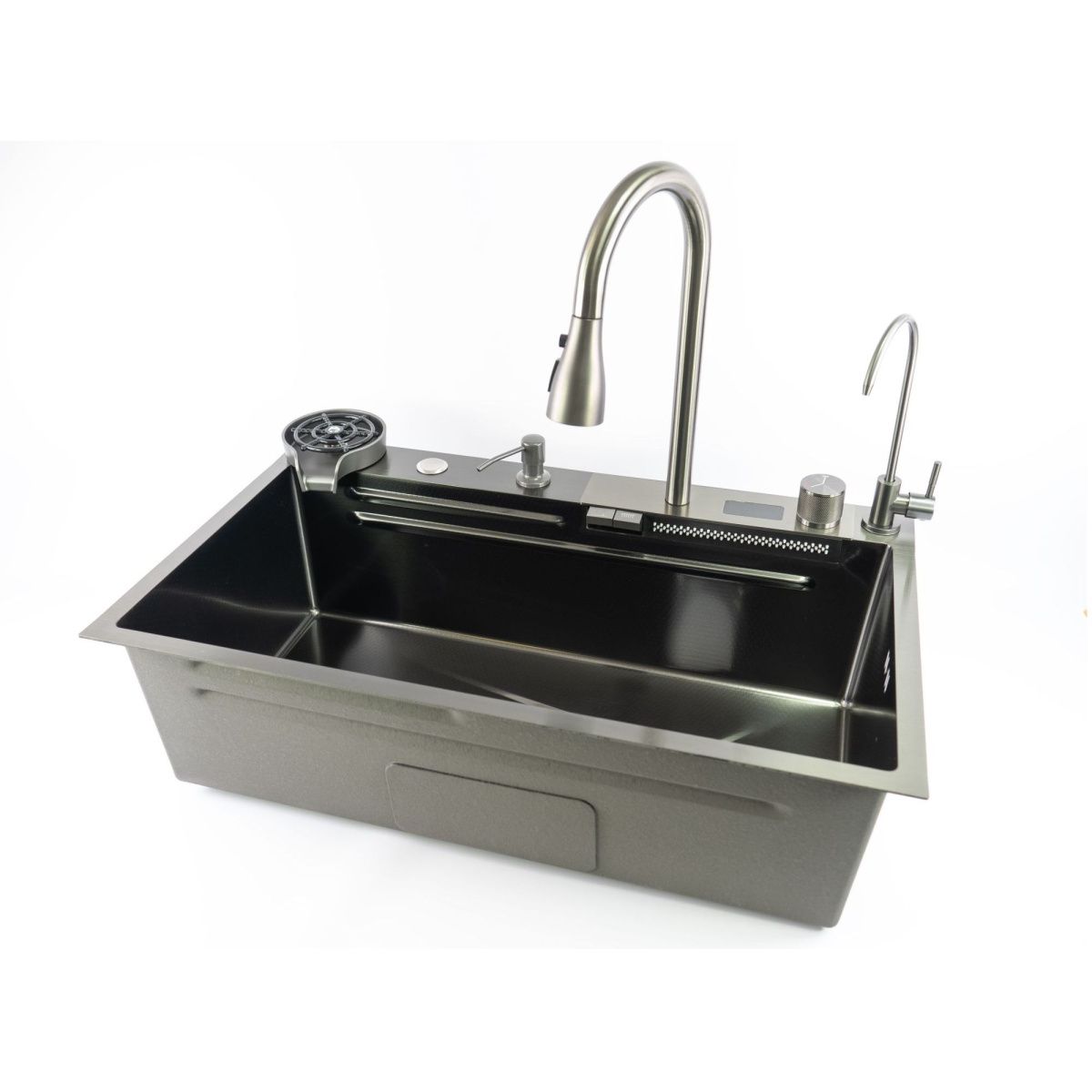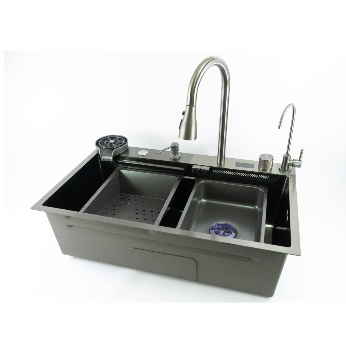 мойка, контейнер для посуды, контейнер для фруктов и овощей, выдвижной смеситель, мойка для стаканов (чашек, бутылок), кран для фильтрованной воды, разделочная доска, монтажный комплект