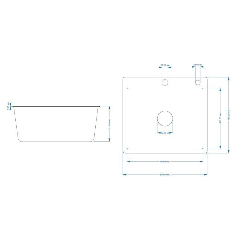 —Кухонная мойка Fmark FSC5045L 50х45 цвет сатин поверхность матовая