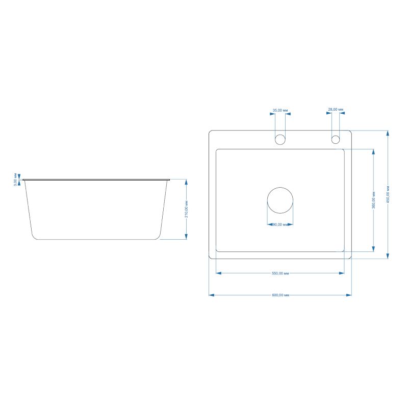 —Кухонная мойка Fmark FSC6045Q 60х45 цвет графит поверхность матовая