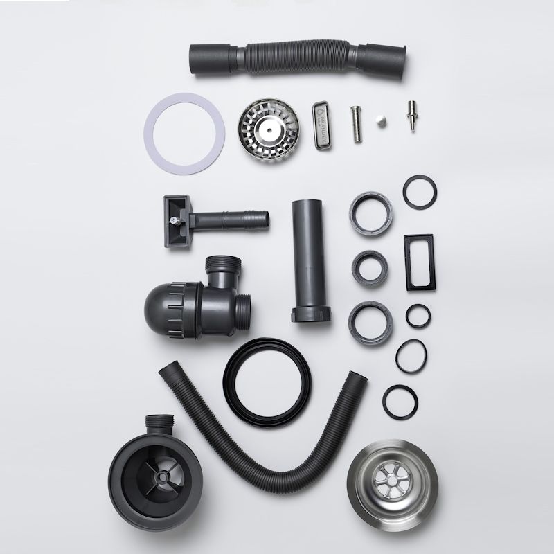 мойка, выпуск с сифоном 3 1/2, крепежный комплект, рамка и заглушка на перелив, инструкция, гарантийный талон.