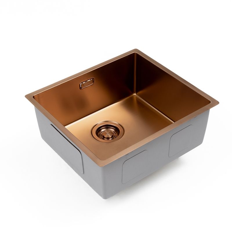Мойка Grandex Aqua OPTIMA 49 PVD COPPER. Артикул: 5010862. Grandex Aqua – мойки, смесители и аксессуары для кухни от команды, создавшей премиальные столешницы Grandex – символ надежности и стиля. Разработано с опытом, проверено временем. Нержавеющая сталь класса AISI 304 покрытия отличается устойчивостью к коррозии в самых агрессивных средах, а высококачественное PVD покрытие придаст вашему интерьеру индивидуальность и премиальный вид. Модели бренда GRANDEX AQUA дополнены гидро- и шумо- изоляцией дна и стенок, поэтому они считаются самыми «тихими». Звуки падающей воды не будут Вас беспокоить никогда. Также Вы можете быть уверенны в долговечности Вашей мойки. Мы на 100% убеждены в качестве своей продукции, поэтому даем долгосрочную гарантию на все товары – 5 лет. GRANDEX AQUA – это тишина, прочность, уверенность!