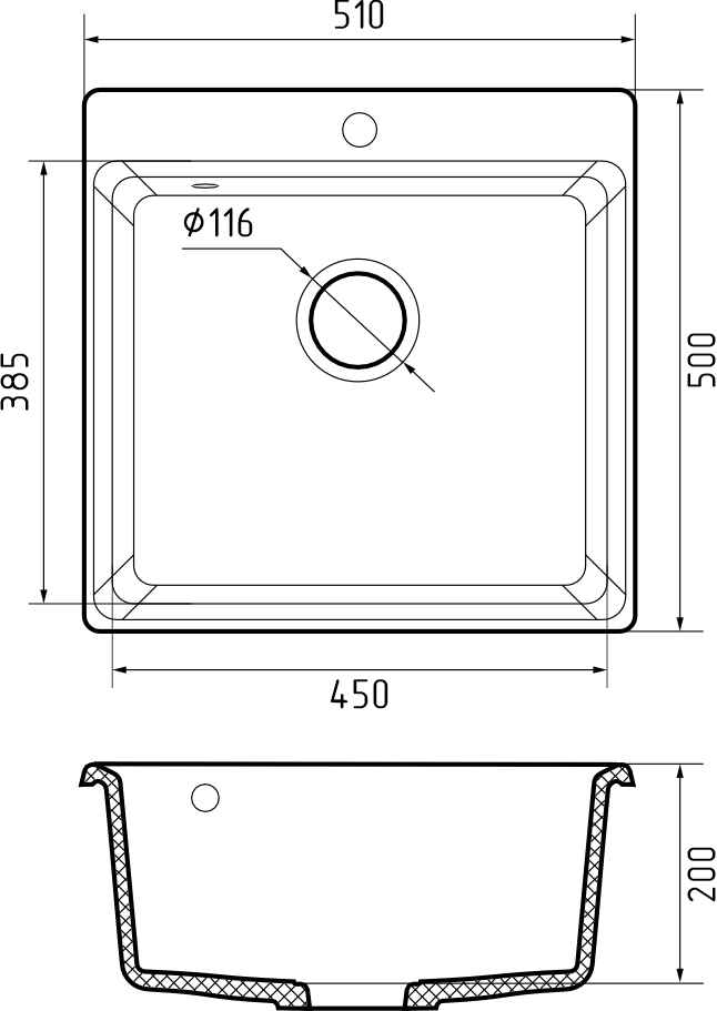 —Кухонная мойка Granfest Level LV-510 черный уц 50х50 цвет черный поверхность матовая