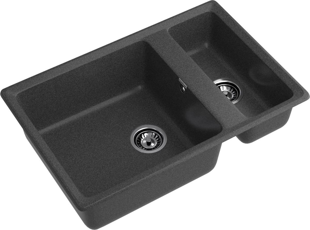 Кухонная мойка врезная из искусственного мрамора, прямоугольной формы, отверстие под смеситель отсутствует, количество чаш составляет 2 шт., размер чашей составляет 450*440*200, 180*440*150, диаметр сливного отверстия составляет 8.89 см. В комплектацию входит: мойка, сливная арматура, паспорт.