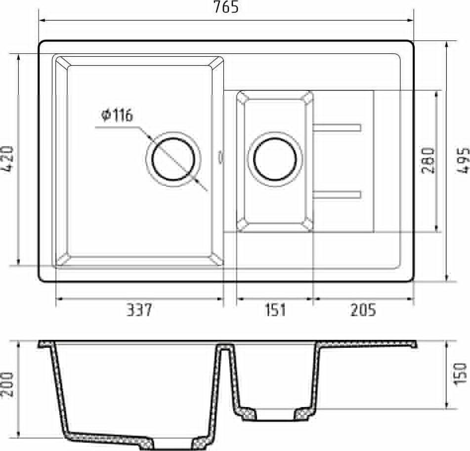 —Кухонная мойка Granfest Quadro Q-775KL иней 75х50 цвет белый поверхность матовая