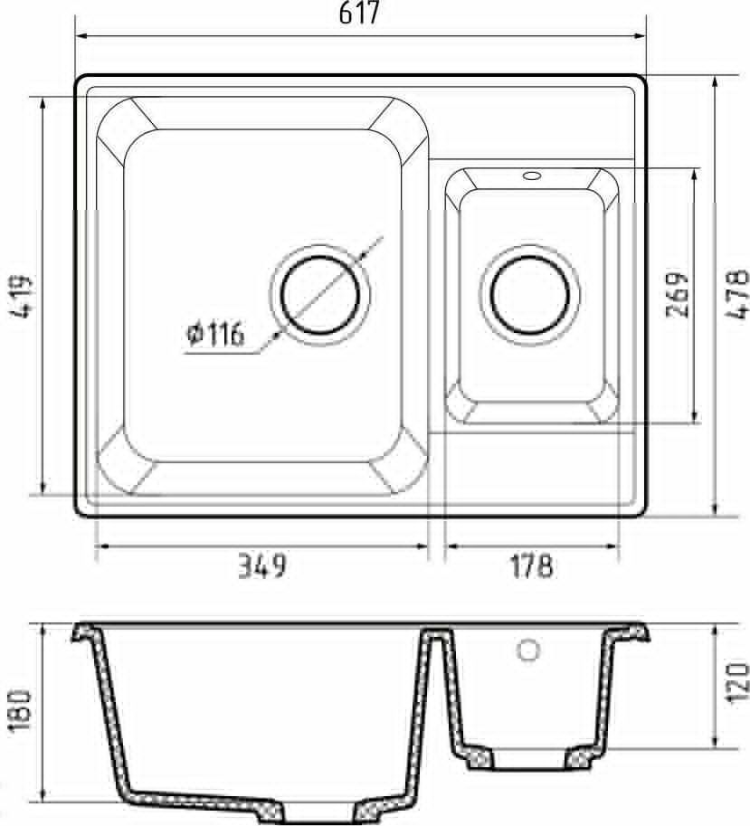 —Кухонная мойка Granfest Quarz 09 темно-серый 60х50 цвет серый поверхность матовая
