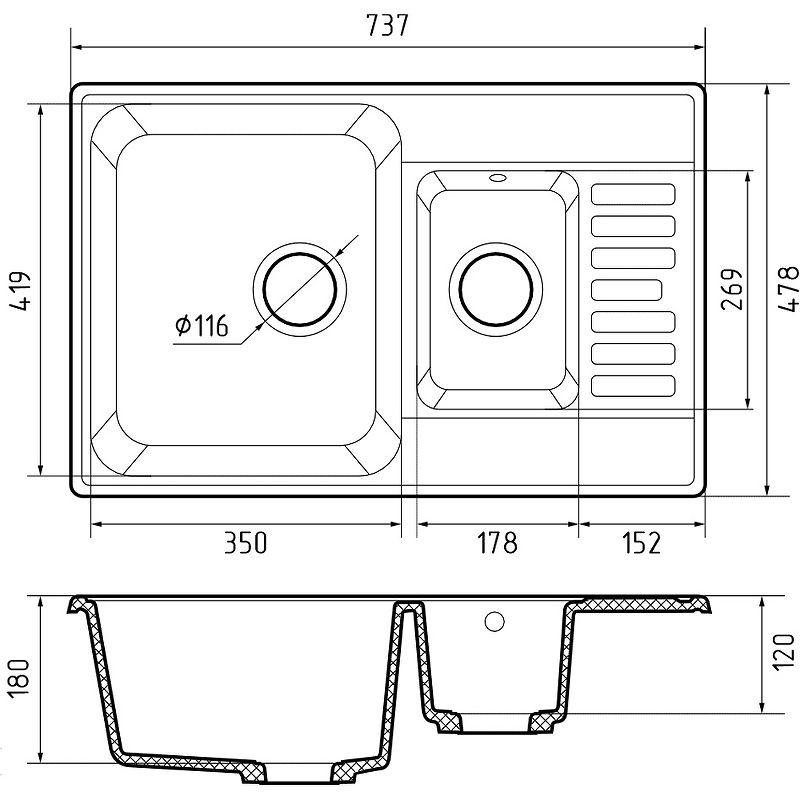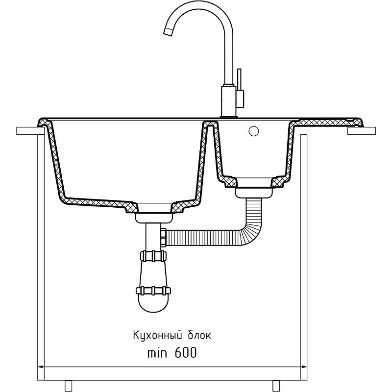—Кухонная мойка Granfest Quarz 21К черный 75х50 цвет черный поверхность матовая