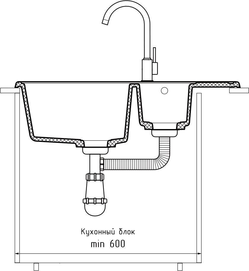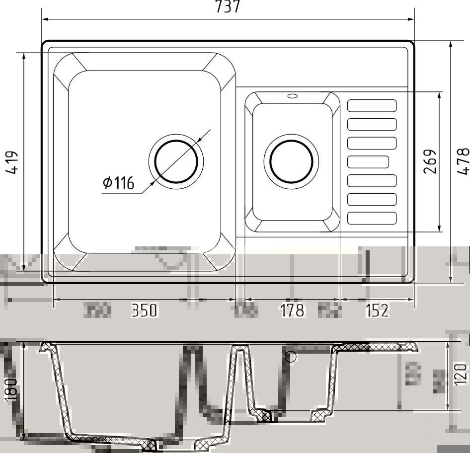 —Кухонная мойка Granfest Quarz 21К серый 75х50 цвет серый поверхность матовая