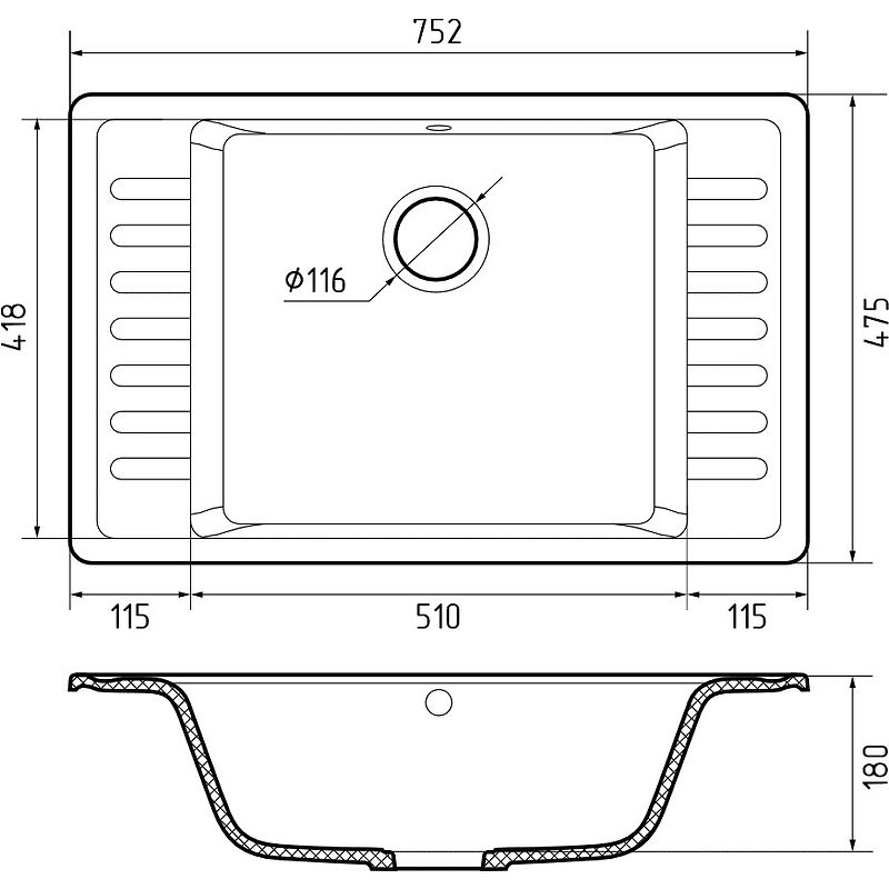 —Кухонная мойка Granfest Quarz 71 белый 75х50 цвет белый поверхность матовая