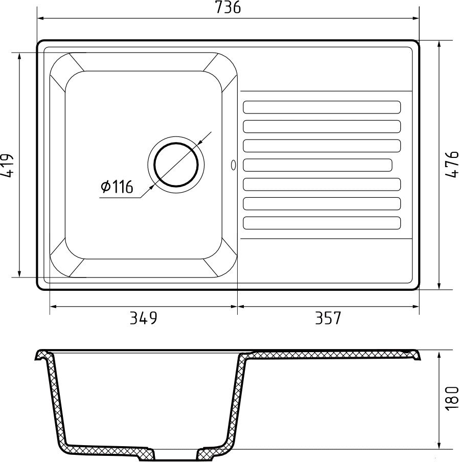 —Кухонная мойка Granfest Quarz 78 серый 75х50 цвет серый поверхность матовая