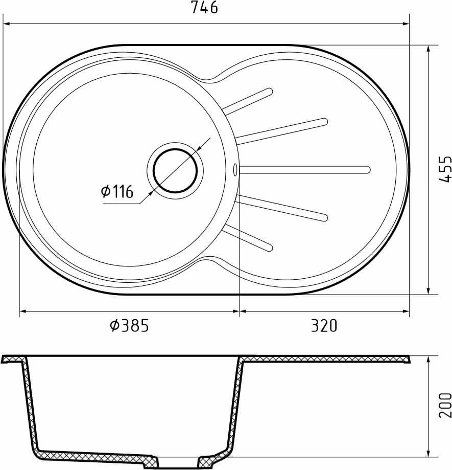 —Кухонная мойка Granfest Rondo R-750L иней 75х45 цвет белый поверхность матовая