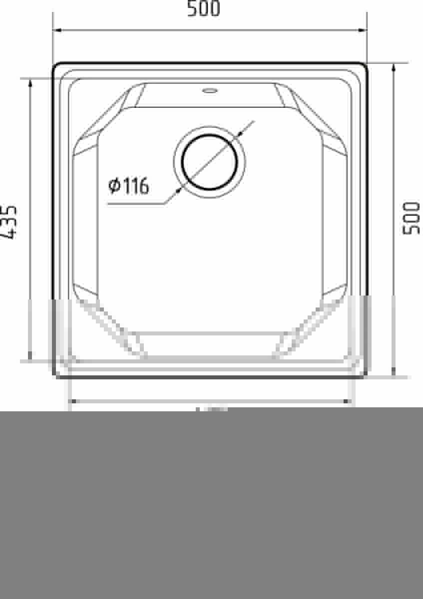 Кухонная мойка врезная из искусственного мрамора, квадратной формы, отверстие под смеситель отсутствует, размер чаши составляет 435*435*200, диаметр сливного отверстия составляет 8.89 см. В комплектацию входит: мойка, сливная арматура, паспорт.