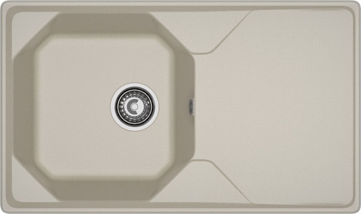 Кухонная мойка врезная из искусственного мрамора, прямоугольной формы, отверстие под смеситель отсутствует, размер чаши составляет 435*435*200, диаметр сливного отверстия составляет 8.89 см. В комплектацию входит: мойка, сливная арматура, паспорт.