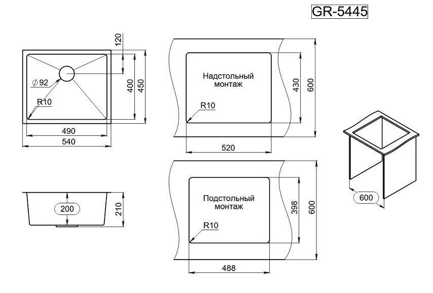 —Кухонная мойка Granula 5445U, ЗОЛОТО САТИН 54х45 цвет золото сатин поверхность матовая