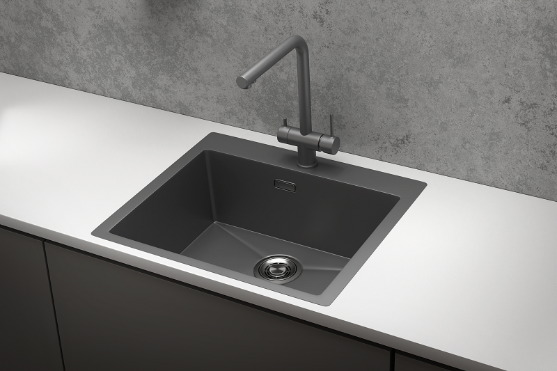 —Кухонная мойка Granula 5951, ГРАФИТ МАТОВЫЙ 60х50 цвет черный поверхность матовая