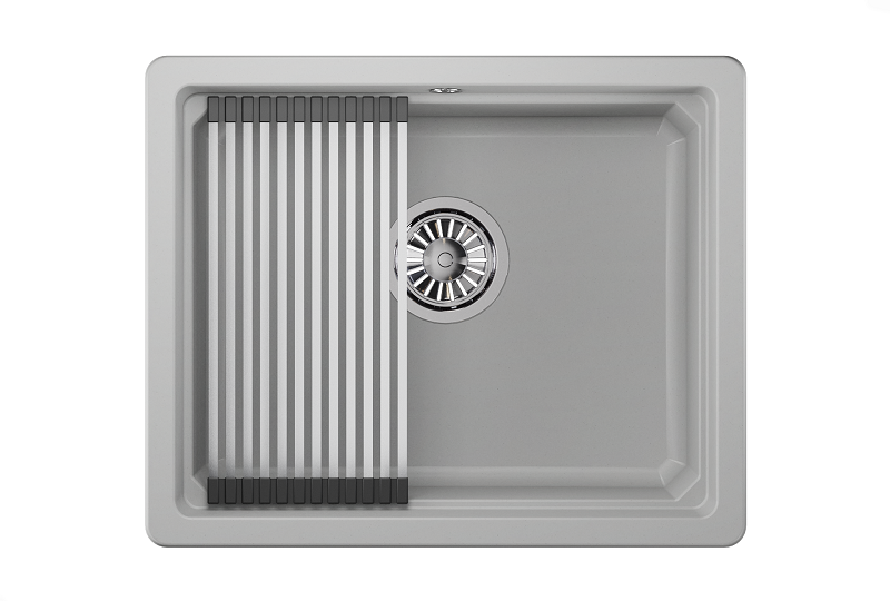 Мойка российского производителя Granula. Односекционная кухонная мойка прямоугольной формы 550х450 мм для установки под столешницу в шкаф 600мм. Представляет собой инновационный комплекс с удобной площадкой внутри чаши для установки ролл-мата или разделочной доски. Выполнена из кварцевого композитного материала высокой плотности и гигроскопичности, что обеспечивает не менее 20 лет надежной эксплуатации. Ролл-мат и дозатор из нержавеющей стали идут в комплекте.