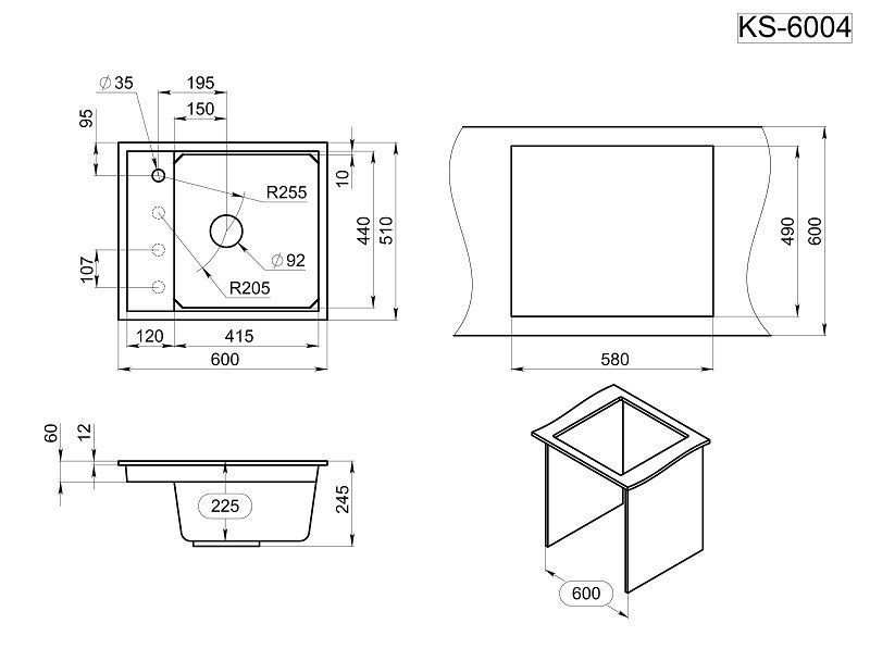 —Кухонная мойка Granula Kitchen Space 6004, АЛЮМИНИУМ 60х50 цвет серый поверхность матовая
