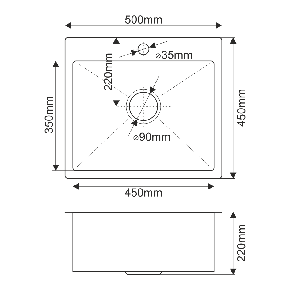 —Кухонная мойка Melana ProfLine H5045/2 сатин 50х45 цвет серый поверхность матовая