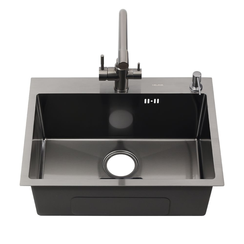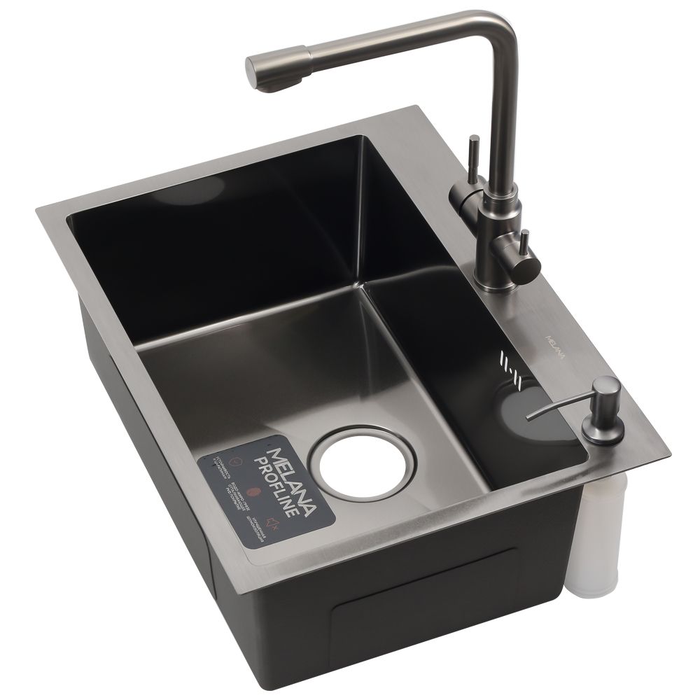 —Кухонная мойка Melana ProfLine MLN-D6045HB+3 графит 60х45 цвет серый поверхность матовая
