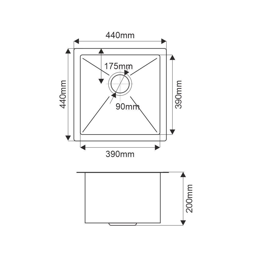 —Кухонная мойка Melana ProfLine MLN-R4444H 45х45 цвет серый поверхность матовая