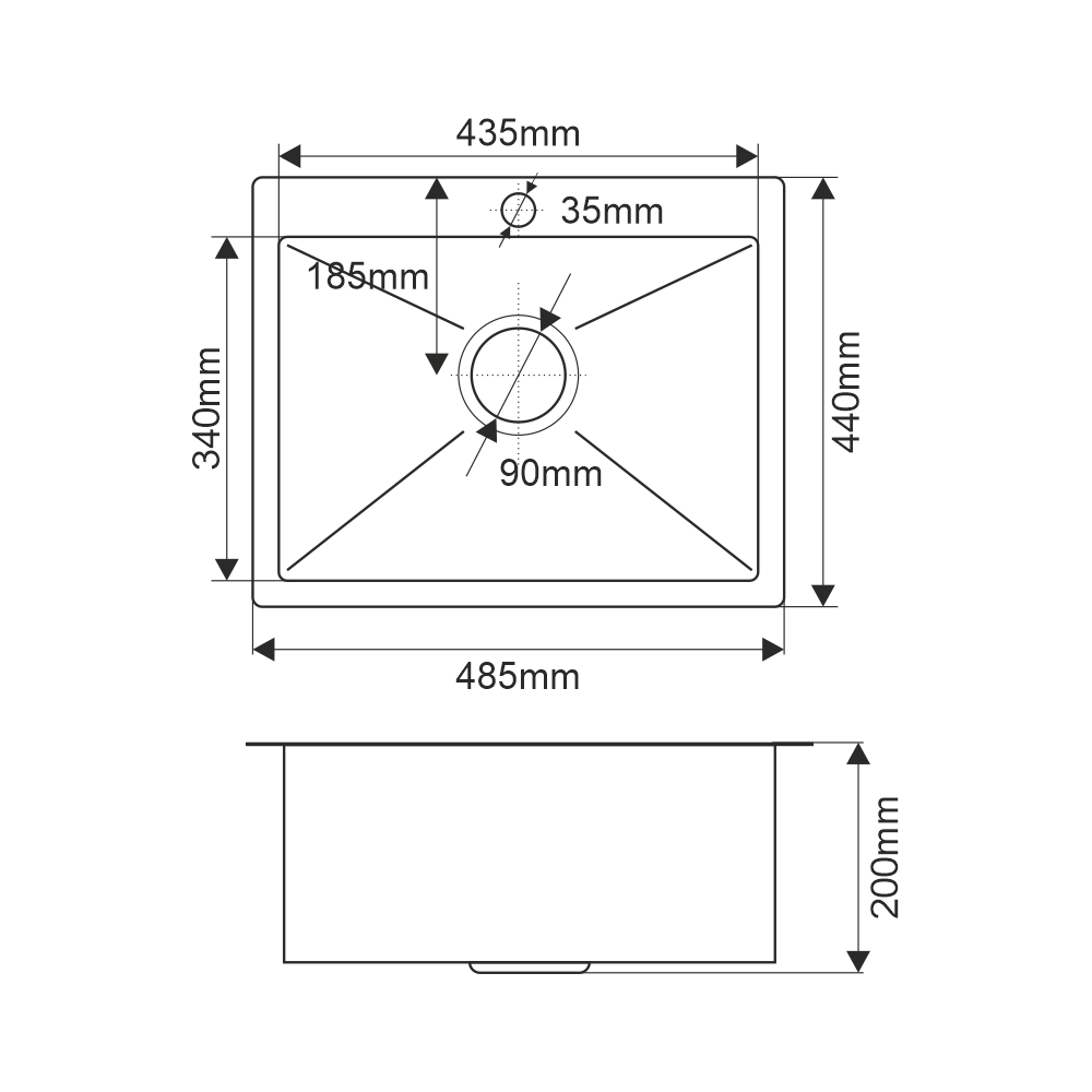 —Кухонная мойка Melana ProfLine MLN-R48544H 50х45 цвет серый поверхность матовая