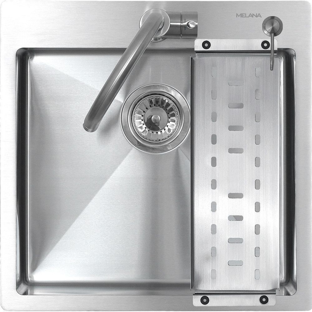 —Кухонная мойка Melana ProfLine MLN-R5050H+дозатор+коландер 50х50 цвет серый поверхность матовая