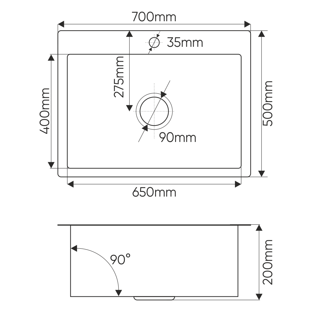 —Кухонная мойка Melana ProfLine MLN-R7050H 70х50 цвет серый поверхность матовая