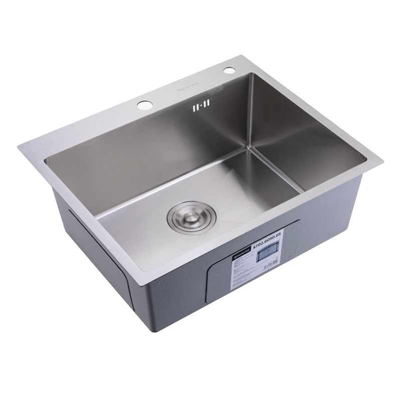 Кухонная мойка Splenka S702.6050.05, сатин. Размер - 600*500*220мм. Кухонные мойки Splenka отличаются практичностью и современным дизайном. Прямоугольные и квадратные раковины для кухни из нержавейки станут идеальным решением для любой кухни. Нержавеющая врезная мойка - отличный выбор для тех, кто ценит качество и долговечность. Изготовлена из качественной нержавеющей стали, которая не боится ни бытовой химии, ни царапин. Металлическая раковина для кухни добавит вашей кухне современности и функциональности. Удобный универсальный монтаж на ваш выбор: врезным способом, поверх столешницы или подстольный. Комплектующие - сифон с выходом для подключения посудомоечной машины и фильтра для питьевой воды, крепление. Толщина стали: верх - 3 мм / чаша - 0.6 мм