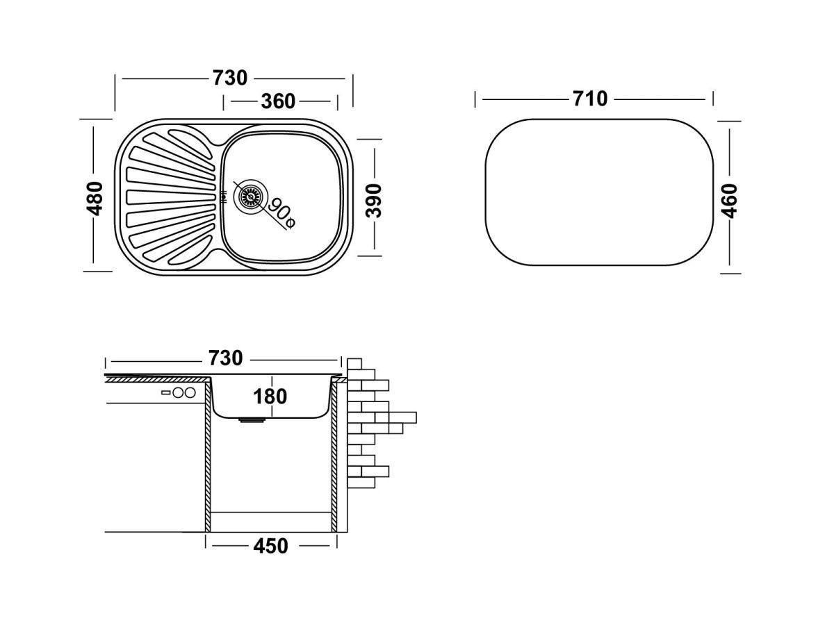 Кухонная мойка GAL730.480 из нержавеющей стали современного дизайна формы — это функциональное сочетание стиля, комфорта и надежности в эксплуатации. С этой раковиной вы модернизируете свою кухню не только в функциональном, но и в декоративном плане. Одночашевая модель с крылом гармонично впишется в любую стилистику кухонного интерьера. Изделие состоит из двух секций: крыло и основная чаша. Чаша располагается относительно крыла справа. Раковина производится из высококачественной нержавеющей стали толщиной 0,8 мм с видом поверхности Декорированное покрытие «Лайн». Модель врезного способа монтажа, имеет размеры 730х480 мм и предназначена для установки в тумбу от 45 см. Вместимость основной чаши позволяет свободно и с комфортом использовать мойку даже при мытье крупногабаритной посуды. Глубина основной чаши составляет 180 мм. Оснащение дополнительными аксессуарами, например, моечной корзиной, увеличат функциональность мойки в процессе эксплуатации. Широкое крыло послужит дополнительной рабочей поверхностью. Его используют для хранения грязной посуды, либо сушки уже вымытой посуды, чему способствует рельефный рисунок, в том числе, крыло можно использовать для разморозки продуктов или хранения фруктов/овощей перед приготовлением. Чаша оборудована большим выпускным отверстием 3½ʺ и переливом для воды, что исключает риск переполнения чаши водой и затопления. Накладки на дне мойки из специального противошумного состава поглощают шум от льющейся воды. Уход за изделием будет легким и быстрым, благодаря уникальным свойствам нержавеющей стали: отсутствие пор и микротрещин исключает скопление грязи и бактерий на поверхности. Мойки из нержавеющей стали являются экологичными, абсолютно безопасными для здоровья, не впитывают запахи, имеют стойкость к коррозии и высоким температурам. Такая конструктивная особенность как скругленные углы чаши, также облегчат уход за мойкой и существенно увеличивают полезный объем чаши.