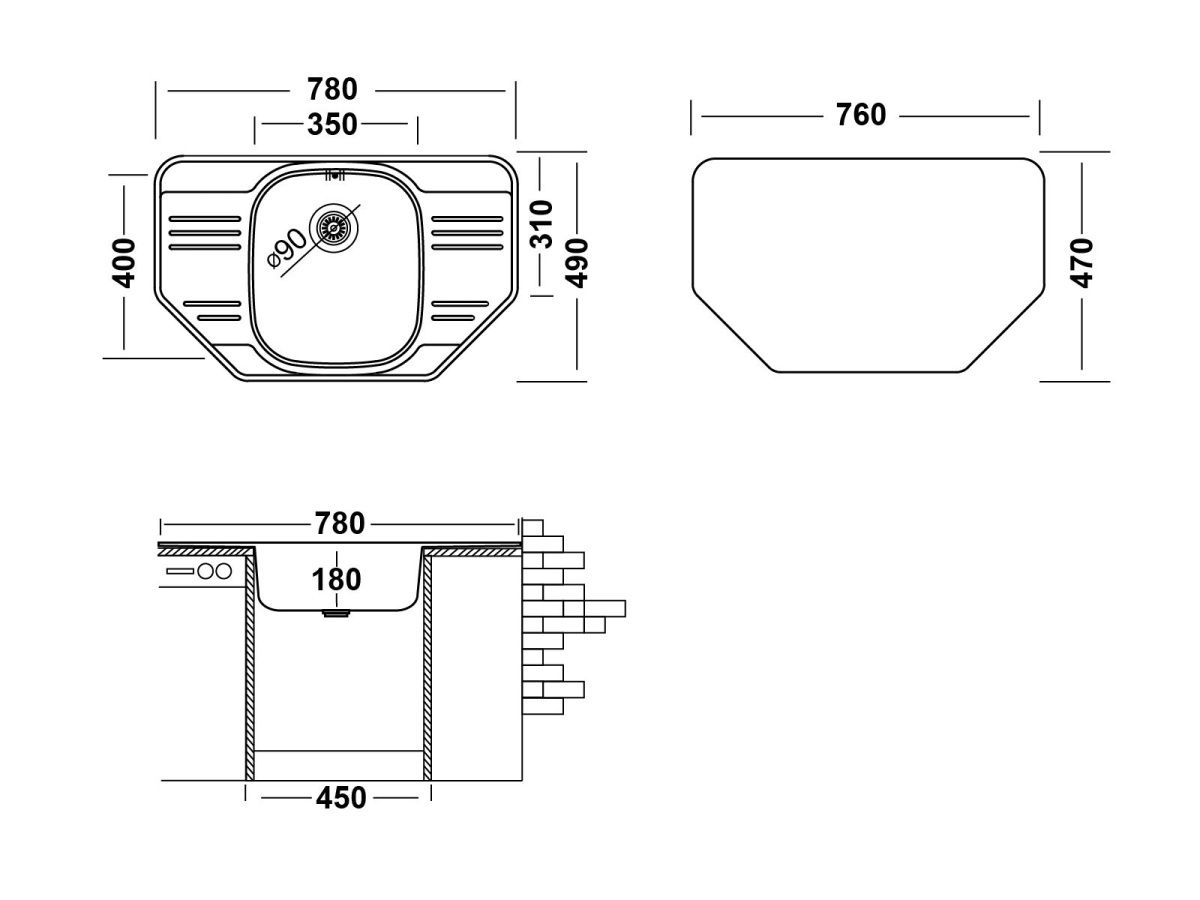 Кухонная мойка GRL780.490 в форме трапеции специально произведена для помещений с необычной планировкой. Оригинальная модель от UKINOX идеально впишется в моечную зону, расположенную в углу. Нестандартный дизайн подчеркивает скругленная форма углов мойки. Несмотря на нестандартную форму, мойка не утрачивает своих эргономических свойств, изделие практично и удобно в эксплуатации, привлекает внимание и улучшает эстетику рабочей зоны. Модель состоит из чаши и двух небольших крыльев, расположенных по бокам чаши. Раковина производится из высококачественной нержавеющей стали толщиной 0,8 мм с видом поверхности Декорированное покрытие «Лайн». Модель врезного способа монтажа, имеет размеры 780×490 мм и предназначена для установки в тумбу от 45 см. Такая раковина идеально подойдет для небольшой кухни. Глубина чаши составляет 180 мм, что позволяет свободно и с комфортом использовать мойку даже при мытье крупногабаритной посуды. Оснащение дополнительными аксессуарами, например, моечной корзиной, увеличат функциональность мойки в процессе эксплуатации. Чаша оборудована большим выпускным отверстием 3½ʺ и переливом для воды, что исключает риск переполнения чаши водой и затопления. По бокам от чаши расположены два небольших крыла, которые послужат дополнительной рабочей поверхностью. Крыло используют для хранения грязной посуды, либо сушки уже вымытой посуды, чему способствует рельефный рисунок, в том числе, крыло можно использовать для разморозки продуктов или хранения фруктов/овощей перед приготовлением. На корпусе изделия предусмотрена площадка для установки смесителя и дополнительных аксессуаров в виде диспенсера для жидкого моющего средства или крана для фильтрованной воды. Уход за изделием будет легким и быстрым, благодаря уникальным свойствам нержавеющей стали: отсутствие пор и микротрещин исключает скопление грязи и бактерий на поверхности. Мойки из нержавеющей стали являются экологичными, абсолютно безопасными для здоровья, не впитывают запахи, имеют стойкость к коррозии и высоким температурам. Такая конструктивная особенность как скругленные углы чаши, также облегчат уход за мойкой и существенно увеличивают полезный объем чаши.
