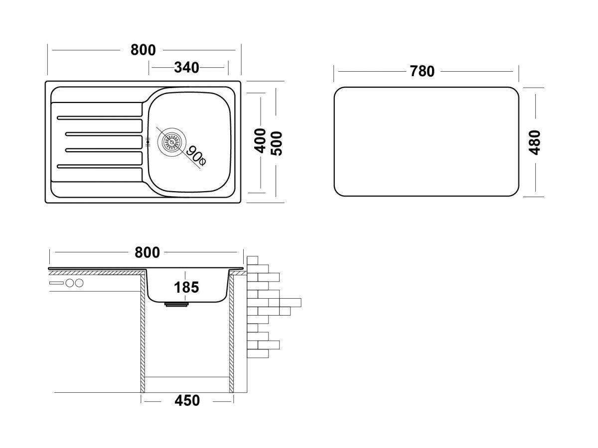 Кухонная мойка GRL800.500  — это функциональное сочетание стиля, практичности и надежности в эксплуатации. Мойка UKINOX произведена из высококачественной нержавеющей стали, благодаря чему изделие отличается высокой прочностью, устойчивостью к образованию коррозии и воздействию высоких температур. Изделие состоит из одной чаши и широкого крыла. Чаша располагается относительно крыла справа. Раковина производится из нержавеющей стали толщиной 0,8 мм с видом поверхности Декорированное покрытие «Лайн». Модель врезного способа монтажа, имеет размеры 800×500 мм и предназначена для установки в тумбу от 45 см. Такая раковина идеально подойдет для просторных кухонь. Глубина чаши составляет 185 мм, что позволяет свободно и с комфортом использовать мойку даже при мытье крупногабаритной посуды. Оснащение дополнительными аксессуарами, например, моечной корзиной, увеличат функциональность мойки в процессе эксплуатации. Чаша оборудована большим выпускным отверстием 3½ʺ и переливом для воды, что исключает риск переполнения чаши водой и затопления. На корпусе изделия предусмотрена площадка для установки смесителя. Накладки на дне мойки из специального противошумного состава поглощают шум от льющейся воды. Уход за изделием будет легким и быстрым, благодаря уникальным свойствам нержавеющей стали: отсутствие пор и микротрещин исключает скопление грязи и бактерий на поверхности. Мойки из нержавеющей стали являются экологичными, абсолютно безопасными для здоровья, не впитывают запахи, имеют стойкость к коррозии и высоким температурам. Такая конструктивная особенность как скругленные углы чаши, также облегчат уход за мойкой и существенно увеличивают полезный объем чаши.