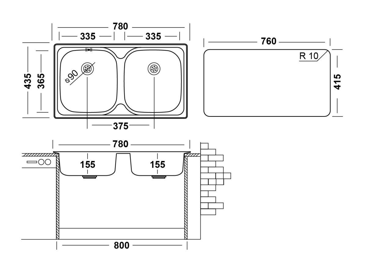 Коллекция моек КЛАССИКА создана для ценителей сантехнического оборудования традиционной прямоугольной формы. Отличительной особенностью коллекции моек является минималистичный дизайн и чаши прямоугольной формы. Кухонная мойка CLM780.435 гармонично сочетает в себе практичность и современную эстетику. Такая мойка будет актуальна практически в любом интерьере кухонного гарнитура. Модель CLM780.435 российского производства сделана из высококачественной нержавеющей стали толщиной 0,6 мм, состоит из двух равнозначных чаш. Производится с видом поверхности Матовый металл. Изделие отличается высоким качеством и ценовой доступностью. Мойка врезного способа монтажа имеет размеры 780х435 мм и предназначена для установки в тумбу от 80 см. Такая раковина идеально подойдет для просторной кухни. Вместительность чаш позволяет свободно и с комфортом использовать мойку даже при мытье крупногабаритной посуды. Вторую чашу можно использовать для замачивания грязной посуды или же выделить ее исключительно для продуктов: разморозка и мытье. Оснащение дополнительными аксессуарами, например, моечной корзиной, увеличат функциональность мойки в процессе эксплуатации. Чаша оборудована большим выпускным отверстием 3½ʺ и переливом для воды, что исключает риск переполнения чаши водой и затопления. На корпусе изделия предусмотрена площадка для установки смесителя. Накладки на дне мойки из специального противошумного состава поглощают шум от льющейся воды. Эстетичный внешний вид и защита от протекания за счет специальной обработки краев и плотного прилегания к столешнице, благодаря специальной уплотнительной ленте. Уход за изделием будет легким и быстрым, благодаря уникальным свойствам нержавеющей стали: отсутствие пор и микротрещин исключает скопление грязи и бактерий на поверхности. Мойки из нержавеющей стали являются экологичными, абсолютно безопасными для здоровья, не впитывают запахи, имеют стойкость к коррозии и высоким температурам. Такая конструктивная особенность как скругленные углы чаши, также облегчат уход за мойкой и существенно увеличивают полезный объем чаши.