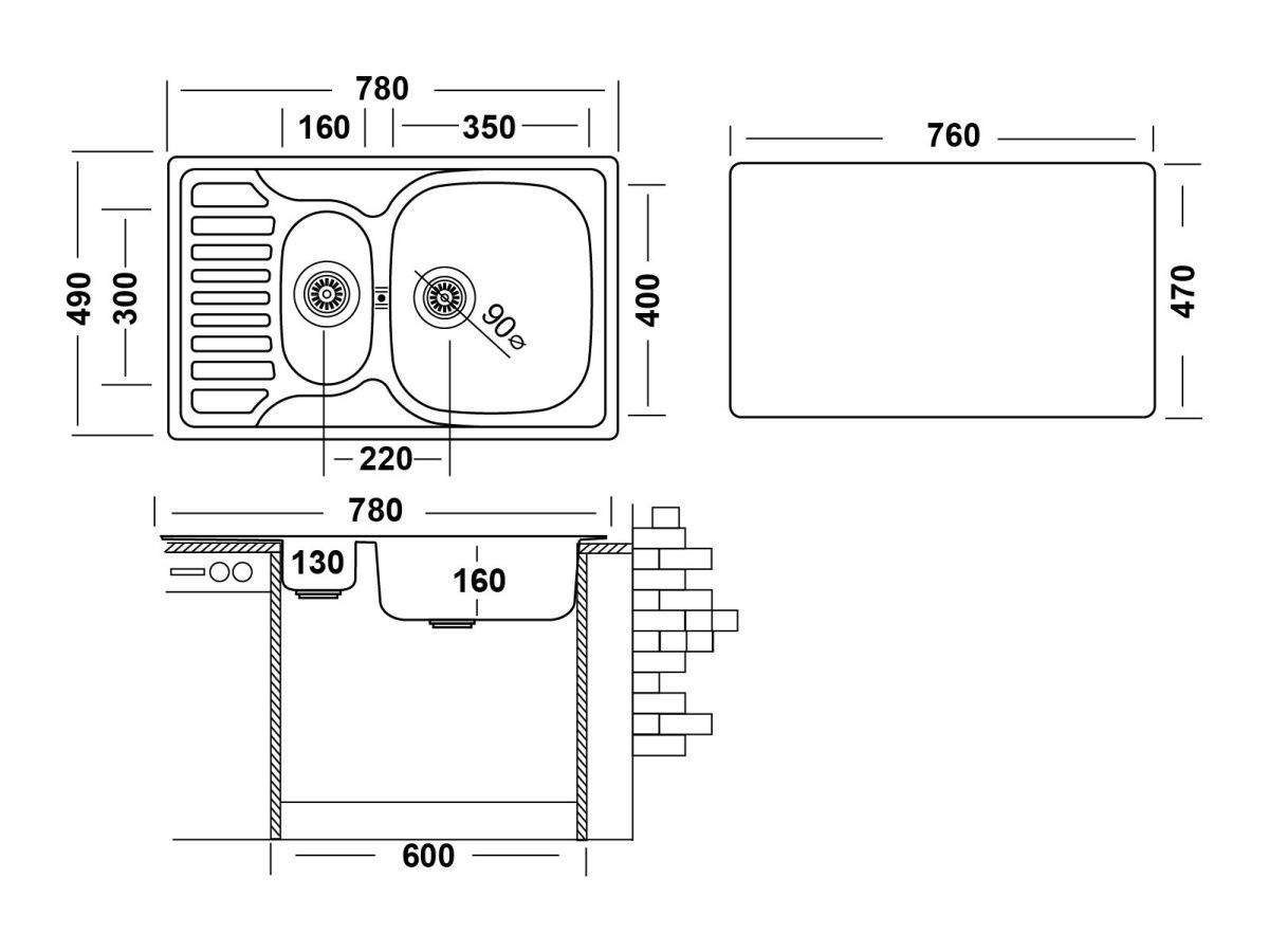 Кухонная мойка COL780.490 15 из нержавеющей стали классической формы. Прямоугольная двухчашевая модель гармонично впишется в любую стилистику кухонного интерьера. Изделие состоит из трех секторов: крыло, основная чаша и дополнительная малая чаша. Основная чаша располагается относительно крыла справа. Раковина производится из нержавеющей стали толщиной 0,8 мм с видом поверхности Декорированное покрытие «Лайн». Модель врезного способа монтажа, имеет размеры 780х490 мм и предназначена для установки в тумбу от 60 см. Вместимость основной чаши позволяет свободно и с комфортом использовать мойку даже при мытье крупногабаритной посуды. Глубина основной чаши составляет 160 мм. Дополнительная малая чаша имеет размер 160х300 мм и глубину 130 мм и может выполнять сразу несколько функций. В нее можно положить вымытую посуду, пока с нее стекает вода, или использовать для разморозки и мытья продуктов. Оснащение дополнительными аксессуарами, например, моечной корзиной или коландером, увеличат функциональность мойки в процессе эксплуатации. Небольшое крыло послужит дополнительной рабочей поверхностью. Его используют для хранения грязной посуды, либо сушки уже вымытой посуды, чему способствует рельефный рисунок, в том числе, крыло можно использовать для разморозки продуктов или хранения фруктов/овощей перед приготовлением. Основная чаша оборудована большим выпускным отверстием 3½ʺ и переливом для воды, что исключает риск переполнения чаши водой и затопления. Накладки на дне мойки из специального противошумного состава поглощают шум от льющейся воды. Эстетичный внешний вид и защита от протекания за счет специальной обработки краев и плотного прилегания к столешнице, благодаря специальной уплотнительной прокладке. Уход за изделием будет легким и быстрым, благодаря уникальным свойствам нержавеющей стали: отсутствие пор и микротрещин исключает скопление грязи и бактерий на поверхности. Мойки из нержавеющей стали являются экологичными, абсолютно безопасными для здоровья, не впитывают запахи, имеют стойкость к коррозии и высоким температурам. Такая конструктивная особенность как скругленные углы чаши, также облегчат уход за мойкой и существенно увеличивают полезный объем чаши.
