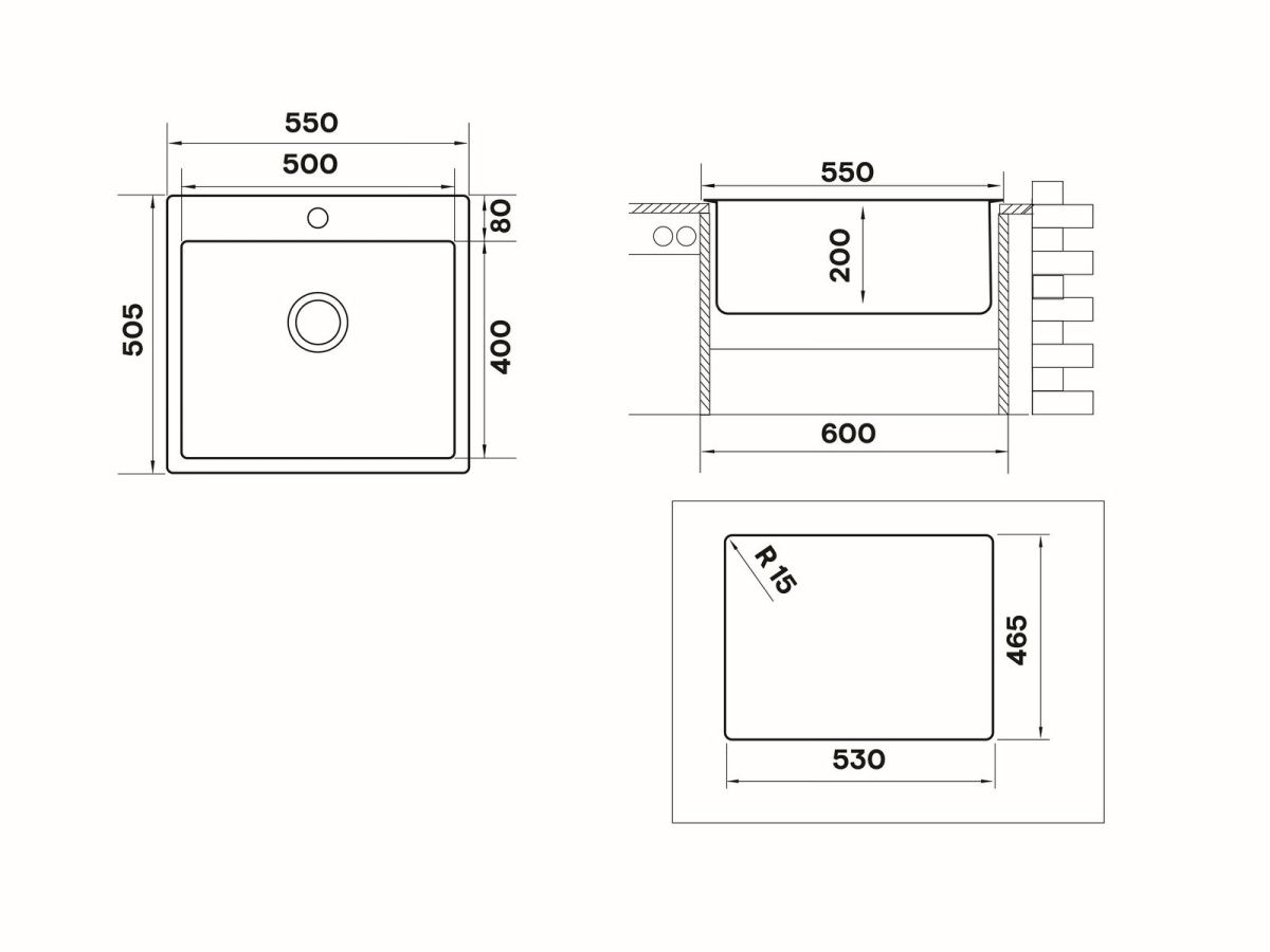 Кухонная мойка TECHNO TEB550.505 врезного монтажа производится из нержавеющей стали AISI 304 с содержанием хрома 18% и никеля 10%, что придаёт изделию превосходные прочностные свойства, устойчивость к окислению и к повышенной температуре. Материал не содержит вредных примесей тяжелых металлов, безопасен для применения в пищевой промышленности. Мойка выполнена в классическом стиле прямоугольной формы - востребованный дизайн пользуется большой популярностью, что позволяет удачно вписать модель в любой современный кухонный интерьер. Отличительными особенностями мойки TEB550.505 являются радиусы скруглений углов чаши (R15) и плоский кант, который не выступает на поверхности столешницы, что придает общему виду зоны мойки дополнительной эстетики. Вместительная чаша глубиной 200 мм позволяет свободно и с комфортом использовать мойку даже при мытье крупногабаритной посуды. Чаша оборудована переливом для воды и большим выпускным отверстием 90 мм. На корпусе изделия предусмотрена площадка для установки смесителя Мойка TECHNO изготовлена цельнотянутым способом. При таком методе производства мойки изготавливаются из цельных листов стали которые помещают в пресс-форму и получают готовые изделия без швов, что делает их более привлекательными. Изделие имеет плоский край, который не выступает на поверхности столешницы, что придает общему виду зоны мойки дополнительную эстетику. Матовая поверхность TEB550.505 достигается применением брашинга (шлифование специальными щётками), благодаря чему на такой поверхности не будут видны маленькие царапины, возникающие в процессе длительной эксплуатации и изделие не потеряет привлекательность внешнего вида. Толщина стали мойки TECHNO составляет 1 мм, что делает её более надежной и долговечной.