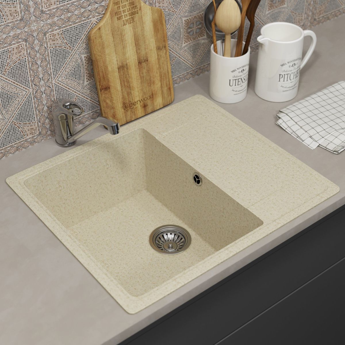 —Кухонная мойка Uperwood ECON UPD-201 4910201236 60х50 цвет бежевый поверхность матовая