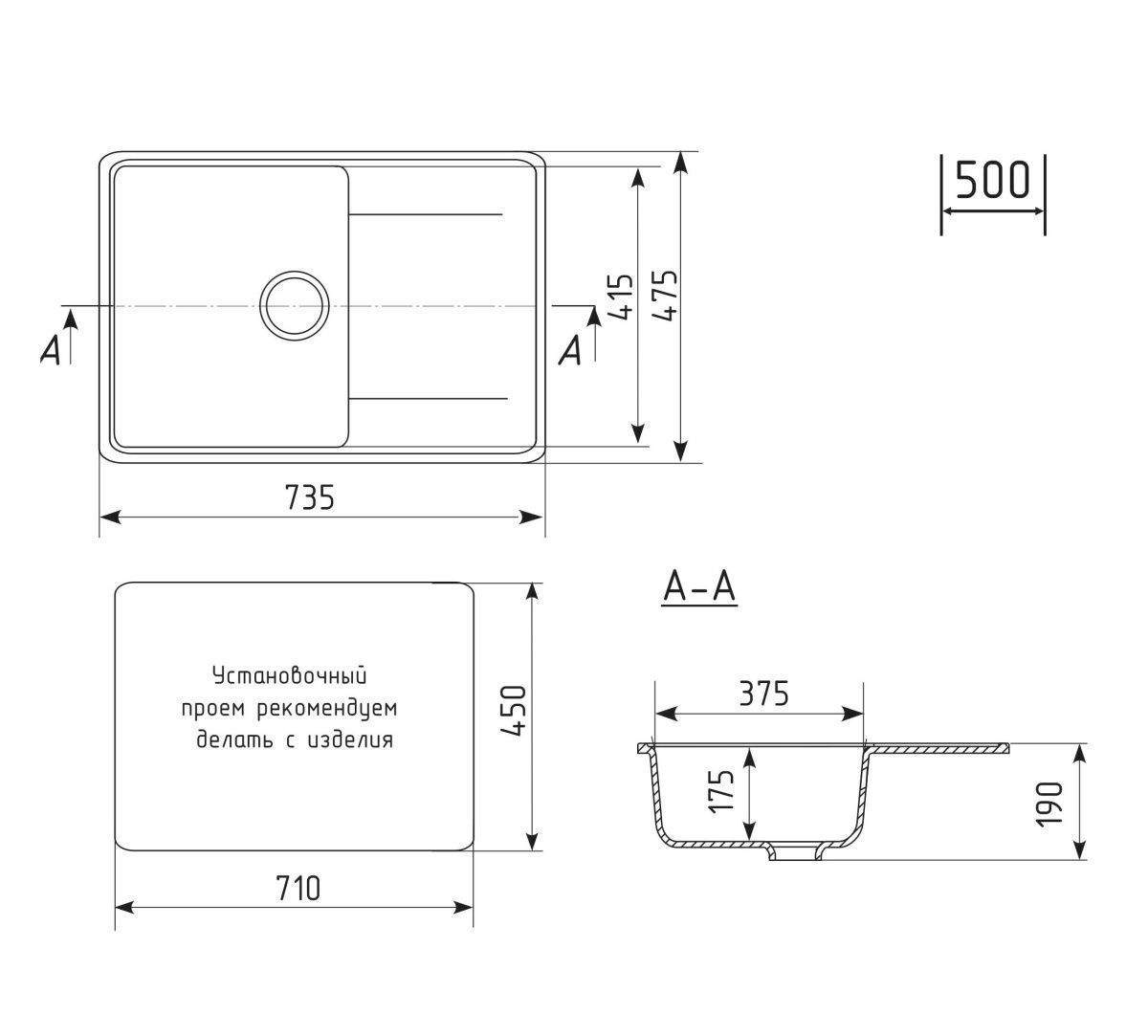 —Кухонная мойка Uperwood ECON UPD-507 4010202110 75х50 цвет серый поверхность матовая