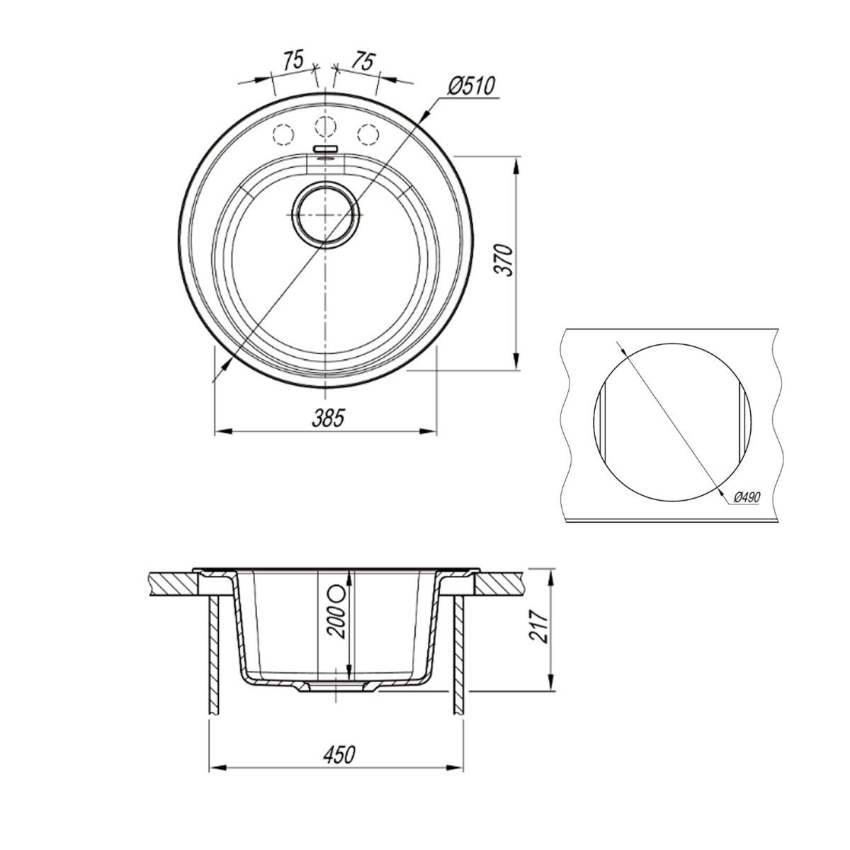 —Кухонная мойка Uperwood Quartz Premium UPD-01 3910202103 50х50 цвет черный поверхность матовая