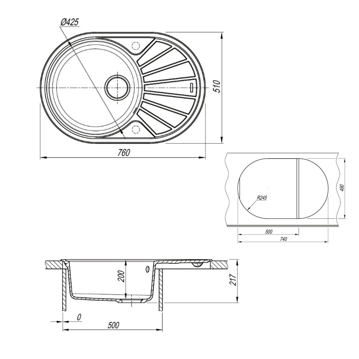 —Кухонная мойка Uperwood Quartz Premium UPD-02 3910202107 75х50 цвет черный поверхность матовая