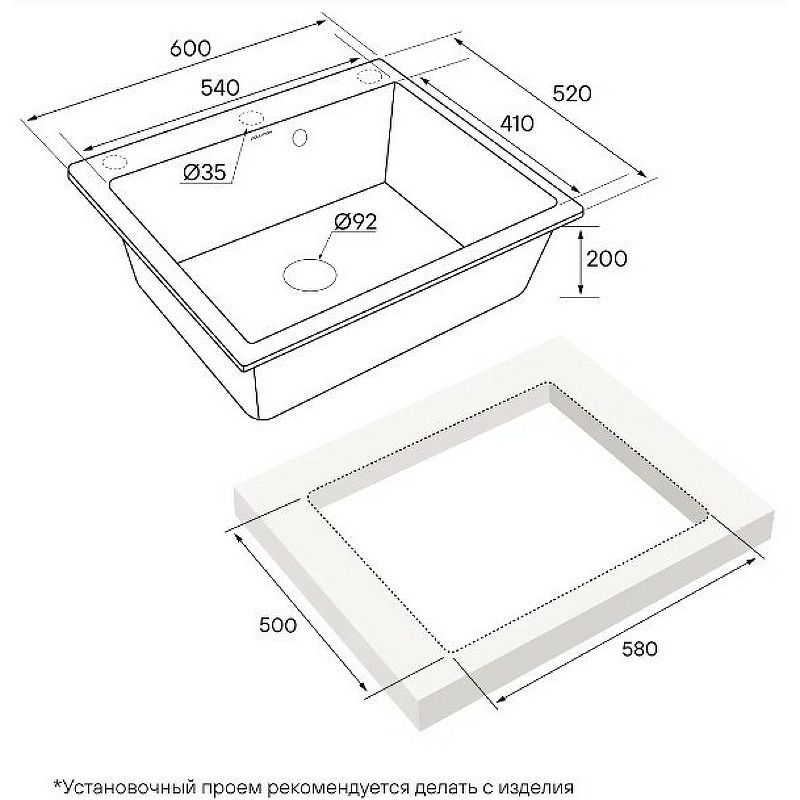 Мойка кухонная Paulmark KANTE 60 из IT-GRANIT.