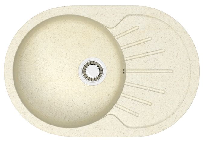 Кухонная мойка изготовлена из современных экологически чистых материалов, природного молотого кварца, мрамора или гранита с добавлением специальных пигментов и красителей.