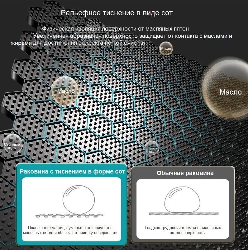 Мойка из нержавеющей стали с рифленым PVD покрытием, способствующему ее легкой очистке (поверхность защищена от контакта с маслами и жирами, являющимися основными элементами загрязнения на кухне) и повышенной износостойкости, так как она не подвержена царапинам и на ней не скапливается вода.
